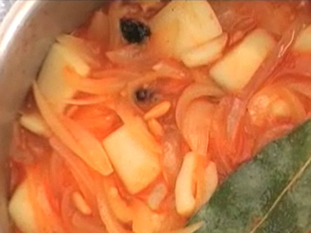 Рецепт испанской кухни.На 2 порции: каракатица — 1 штука;лук — 2 штуки;чеснок — 1 зубчик;томатный сок, изюм, кедровые орехи, лавровый лист, бренди, паприка, черный перец, оливковое масло, соль. Язык: Русский