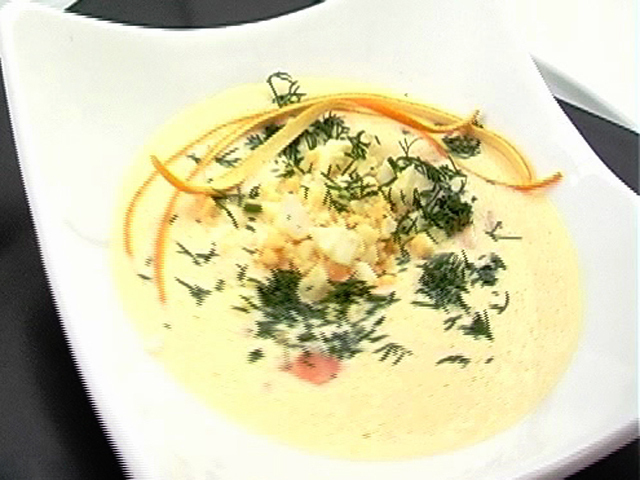 Холодный суп из морепродуктов поможет вкусно пережить жару.Состав:сок двух апельсинов;яйца — 2 штуки;чеснок — 1 зубчик;креветки — 12 штук;бальзамический уксус, оливковое масло, соль, укроп — по вкусу. Язык: Русский